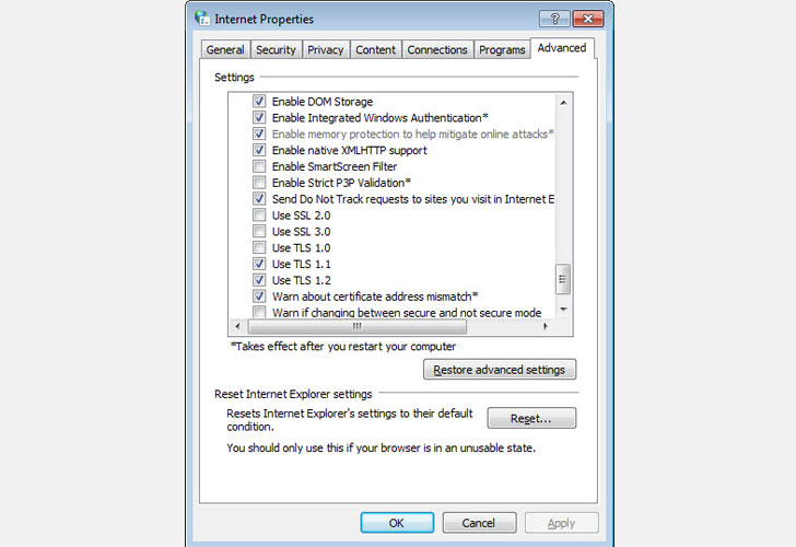 สำหรับผู้ใช้งาน Chrome สามารถปิดการใช้งาน TLS เวอร์ชั่นเก่าได้ที่ Settings → Advanced Settings → Open Proxy Settings → Click ‘Advanced’ Tab → ใรส่วนของ ‘Security’ เอาเครื่องหมายถูกออกที่ TLS 1.0 and 1.1 จากนั้นกดปุ่มบันทึก