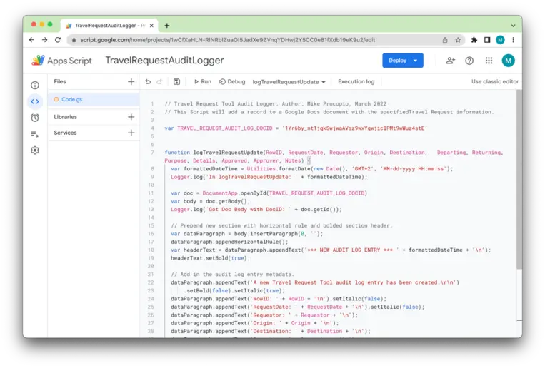 Apps Script เป็นแพลตฟอร์มเพื่อใช้สั่งงานแบบ low-code เป็นการเขียนโค้ดแบบง่ายๆ เพื่อควบคุมแอพต่างๆ ในบริการของ Google Workspace นอกจากนี้ยังรวมถึง YouTube, Google Analytics หรือ BigQuery อีกด้วย