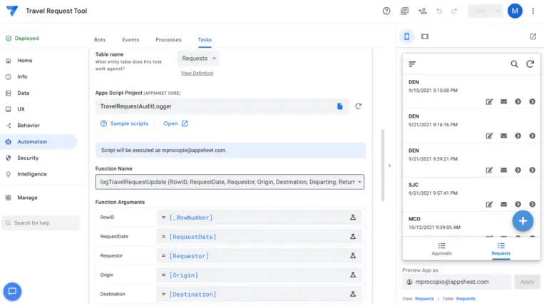 สิ่งนี้จะช่วยให้ผู้ที่ใช้งาน AppSheet แล้วไม่มีความรู้ทางด้านการเขียนโค้ด สามารถใช้ระบบ UI ของ AppSheet ไปสั่งงาน Apps Script ที่สร้างขึ้นได้