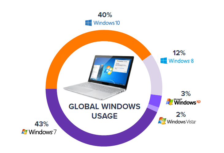 สำหรับเวอร์ชั่นของ Windows ที่นิยมติดตั้งมากที่สุดคือWindows 7, Windows 10, และ Windows 8
