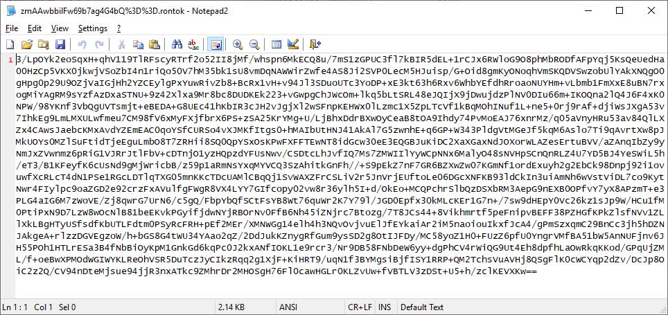 Michael Gillespie ได้ทำการตรวจสอบ Ransomware พบว่าเป็นไฟล์ที่ต้องมีการเข้ารหัสแบบ base64 ซึ่งนำมารวมกับนามสกุล .rontok จะได้เป็นเชื่อไฟล์ใหม่ ยกตัวอย่างเช่น ชื่อไฟล์ที่เข้ารหัส zmAAwbbilFw69b7ag4G4bQ%3D%3D.rontok