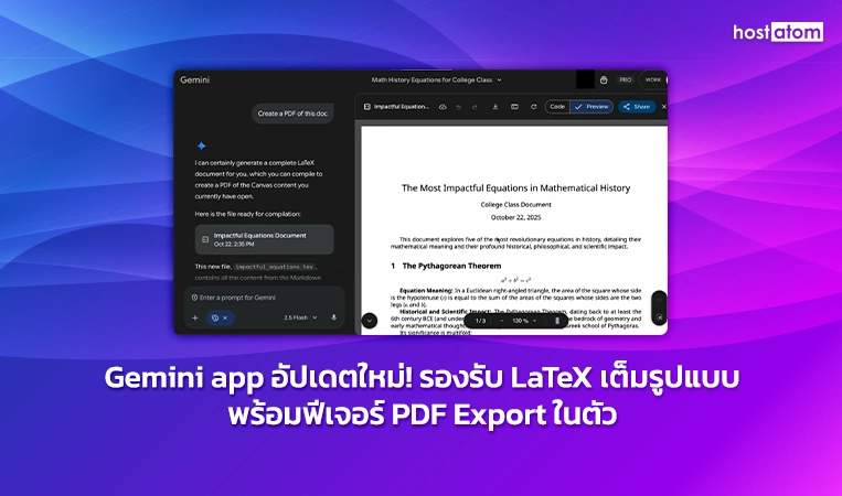 Google ประกาศอัปเดตครั้งใหญ่ให้กับ Gemini app โดยเพิ่มความสามารถในการรองรับ LaTeX อย่างเต็มรูปแบบ พร้อมฟีเจอร์ที่สร้างและส่งออก PDF ได้โดยตรงภายในแอป เพื่อช่วยให้ผู้ใช้สามารถสร้างเอกสารที่ซับซ้อน เช่น สมการทางคณิตศาสตร์ ตาราง หรือรายงานเชิงเทคนิค ได้ง่ายดายยิ่งขึ้น โดยไม่ต้องพึ่งโปรแกรมเฉพาะทางอีกต่อไป