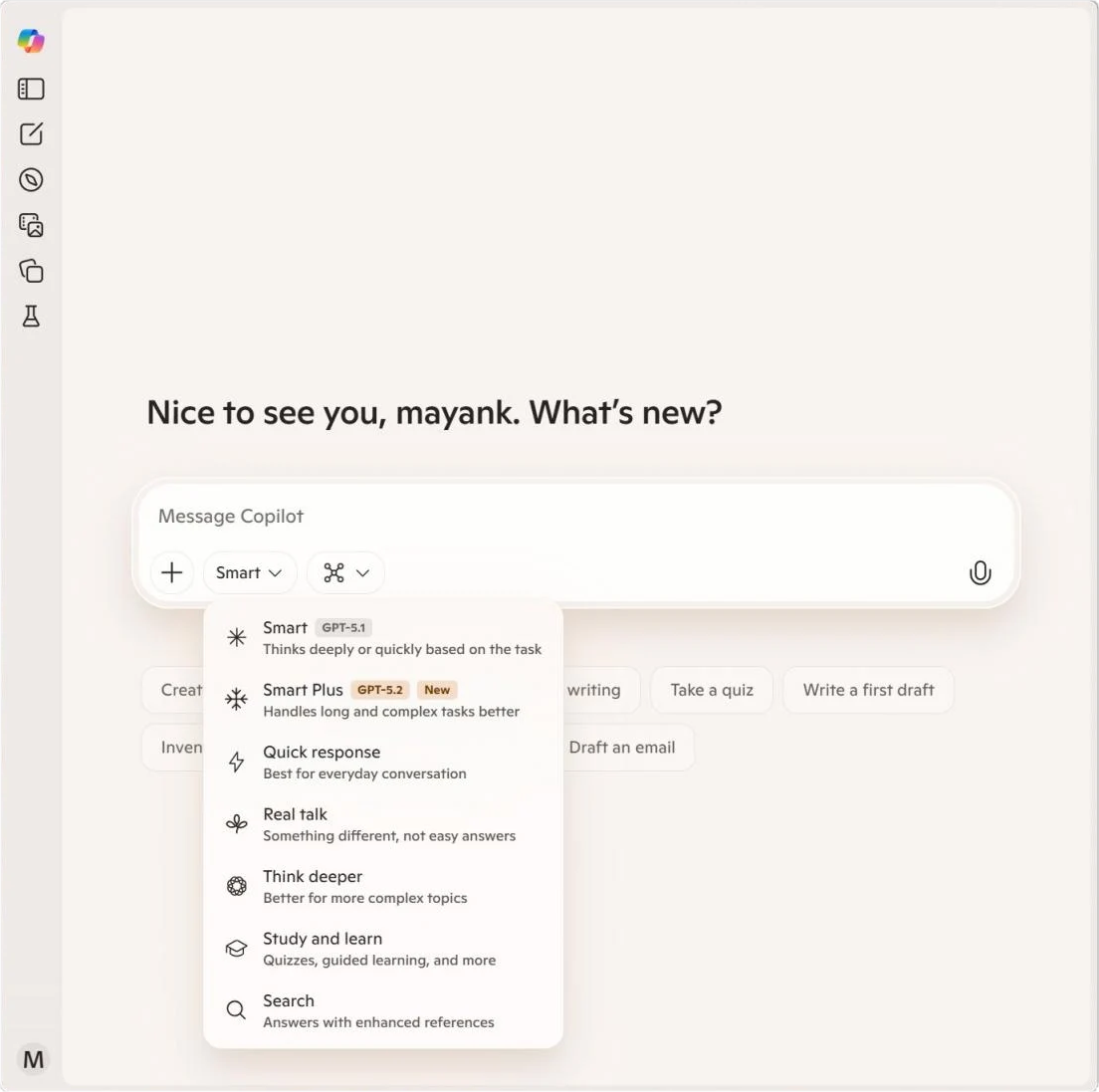 Microsoft เริ่มทยอยอัปเดต Copilot ด้วยโมเดล AI รุ่นใหม่อย่าง GPT-5.2 ภายใต้โหมด Smart Plus โดยผู้ใช้สามารถเข้าถึงได้ฟรีทั้งบนเว็บ, Windows และอุปกรณ์มือถือ ซึ่งถือเป็นอีกก้าวสำคัญที่ทำให้ Copilot มีความฉลาดและทำงานได้ลึกกว่าเดิม