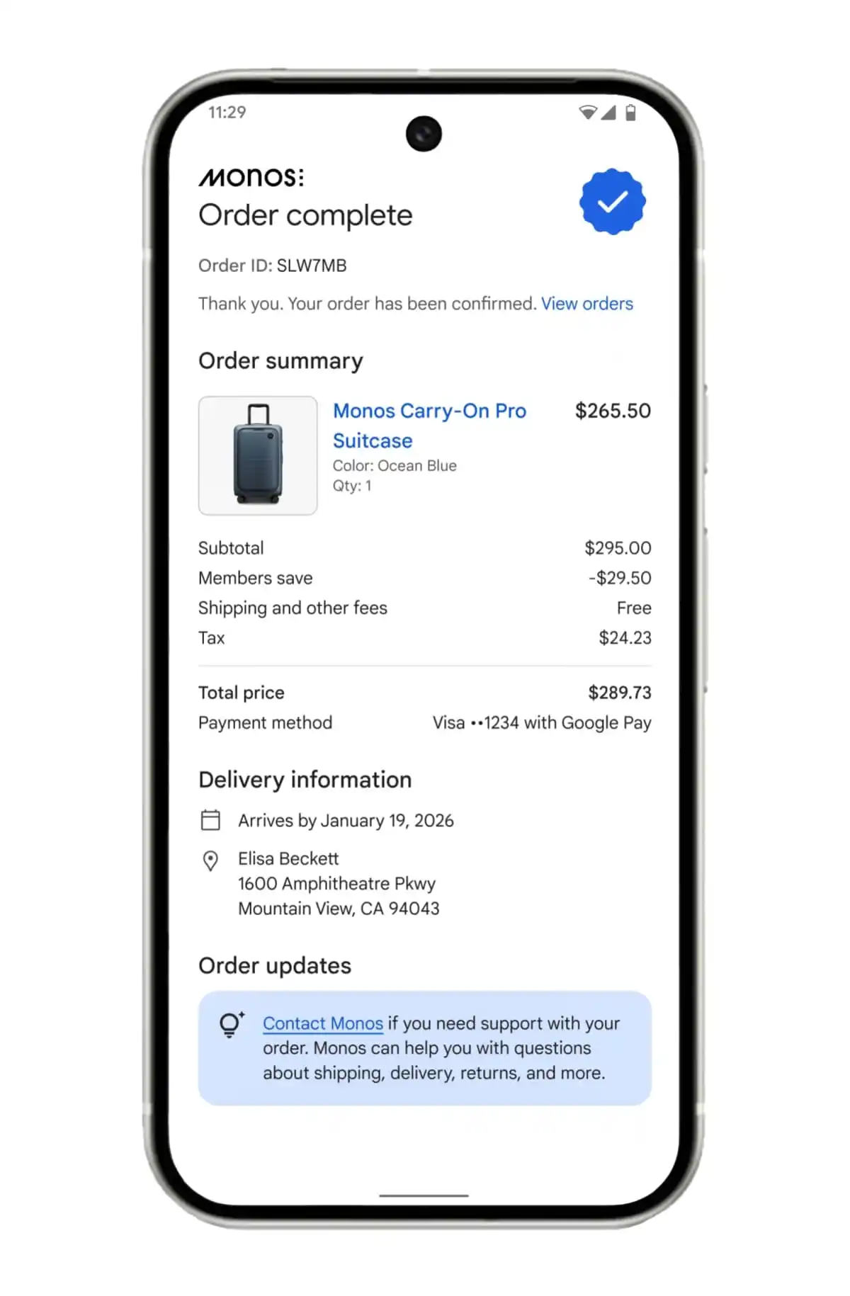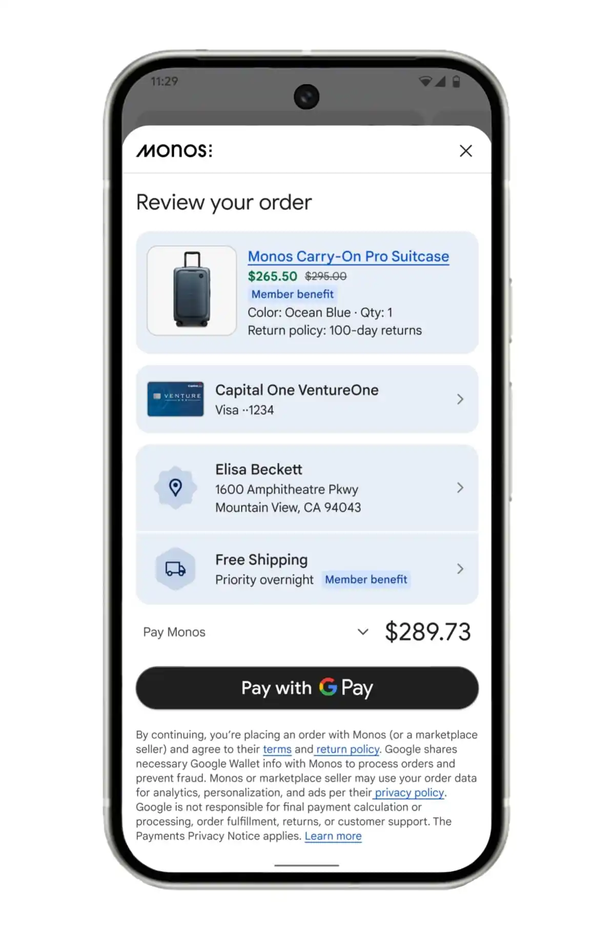 - กรอกข้อมูลที่อยู่จัดส่งจาก Google Wallet