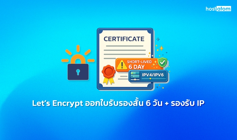 ข่าวดีสายเว็บและแอป! Let’s Encrypt เปิดให้ใช้ใบรับรอง (SSL/TLS) แบบ อายุสั้นราว 6 วัน และ ใบรับรองสำหรับ IP โดยตรง ช่วยให้บริการที่หมุนเวียนบ่อยหรือกังวลเรื่องกุญแจหลุด ลดความเสี่ยงได้มากขึ้น เพราะใบรับรองหมดอายุเร็ว ไม่ปล่อยช่องโหว่นาน