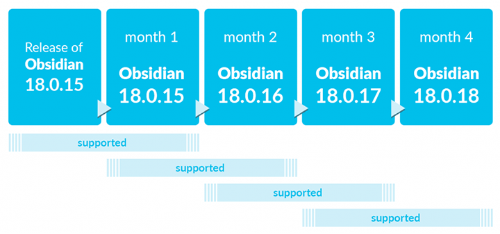 ตัวอย่าง ไทม์ไลน์การอัปเดตรายเดือนของ Plesk Obsidian