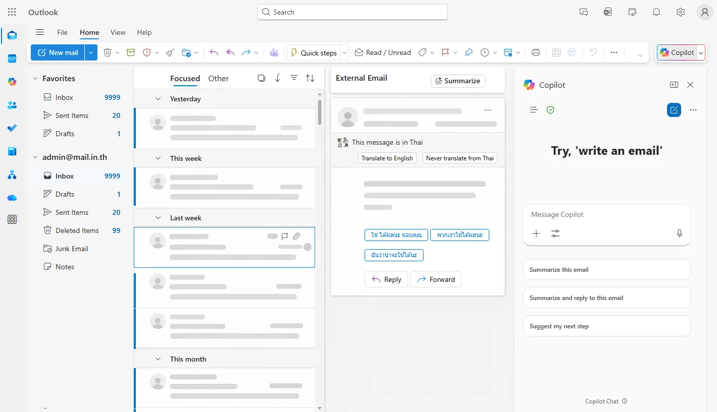 Copilot ช่วยดึงประเด็นสำคัญจากอีเมลและเธรดการสนทนา ประหยัดเวลาและทำความเข้าใจเนื้อหาได้รวดเร็วขึ้น